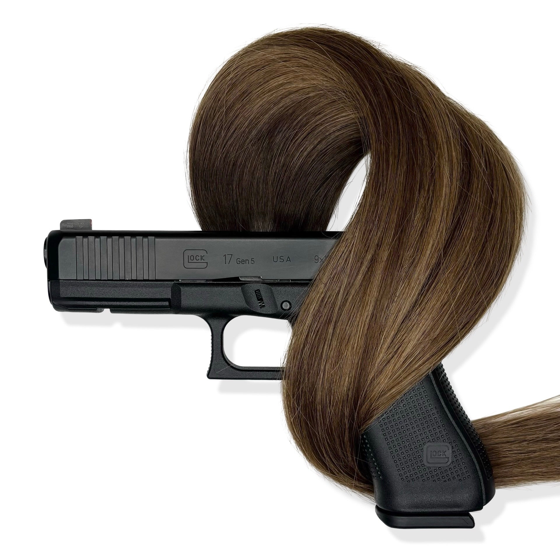 A rich level 5 brown root, melting into strands of level 6 and level 7 light brown warm highlights. ‘Mocha Murder’ is deadly and decadent. A rich, dark blend that lures you in.